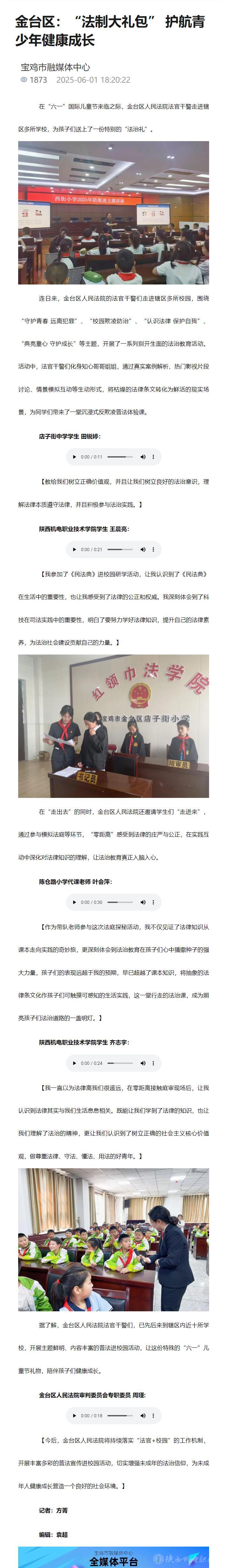 在“六一”國際兒童節(jié)來臨之際,金臺區(qū)人民法院法官干警走進轄區(qū)多所學(xué)校,為孩子們送上了一份特別的“法治禮”。